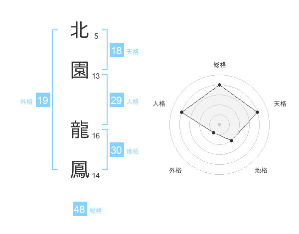 北園 龍鳳さんの総格は48画の4点!