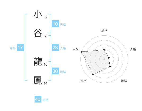 小谷 龍鳳さんを姓名の画数から五運を鑑定