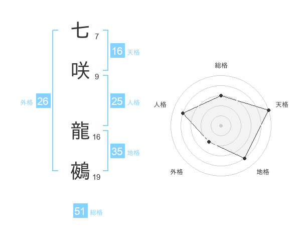 七咲 龍鵺さんを姓名の画数から五運を鑑定