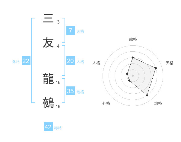 三友 龍鵺さんの総格は42画の3点!