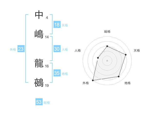 中嶋 龍鵺さんの総格は53画の3点!