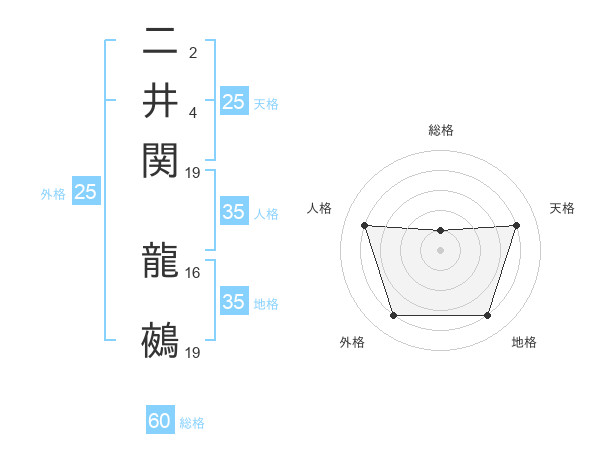 二井関 龍鵺さんの総格は60画の1点!