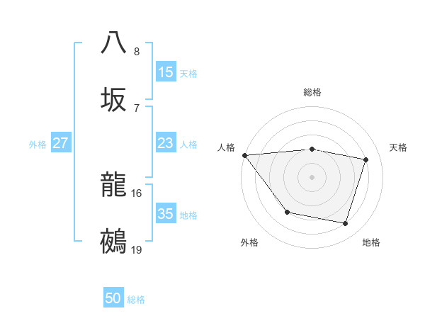 八坂 龍鵺さんを姓名の画数から五運を鑑定