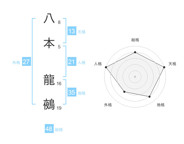 八本 龍鵺さんを姓名の画数から五運を鑑定