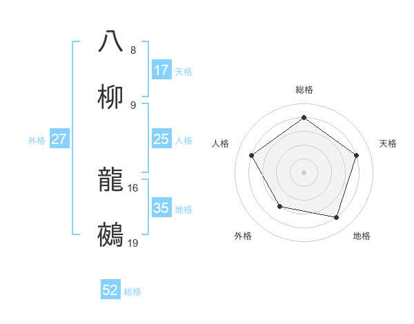 八柳 龍鵺さんを姓名の画数から五運を鑑定