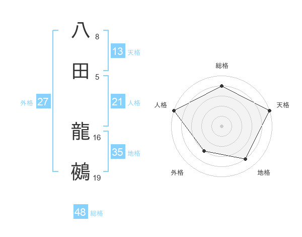 八田 龍鵺さんの天格は13画の5点!