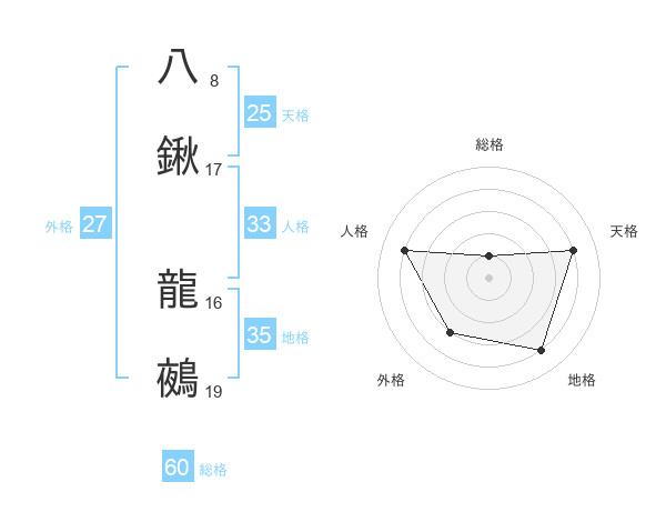 八鍬 龍鵺さんの総格は60画の1点!