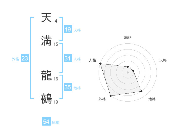 天満 龍鵺さんを姓名の画数から五運を鑑定