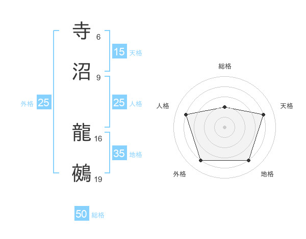 寺沼 龍鵺さんの外格は25画の4点!