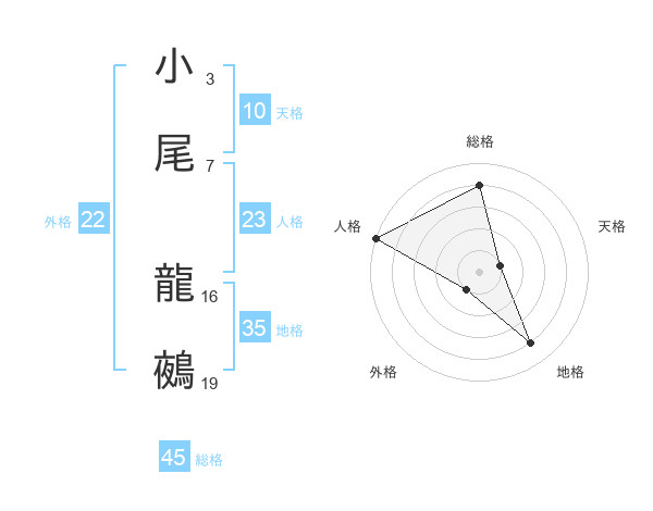 小尾 龍鵺さんの総格は45画の4点!