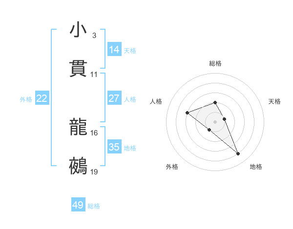 小貫 龍鵺さんを姓名の画数から五運を鑑定