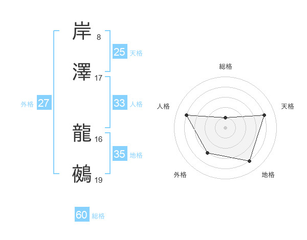 岸澤 龍鵺さんの総格は60画の1点!