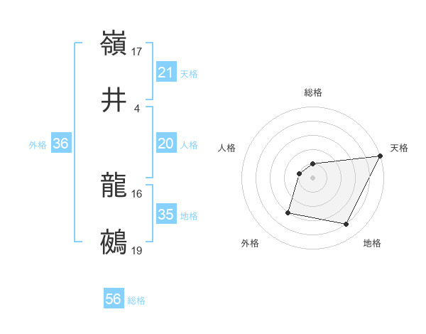 嶺井 龍鵺さんの天格は21画の5点!