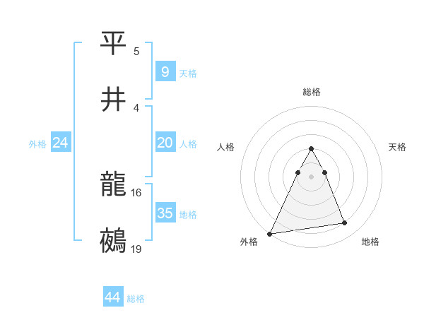 平井 龍鵺さんの外格は24画の5点!