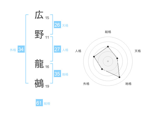 広野 龍鵺さんを姓名の画数から五運を鑑定