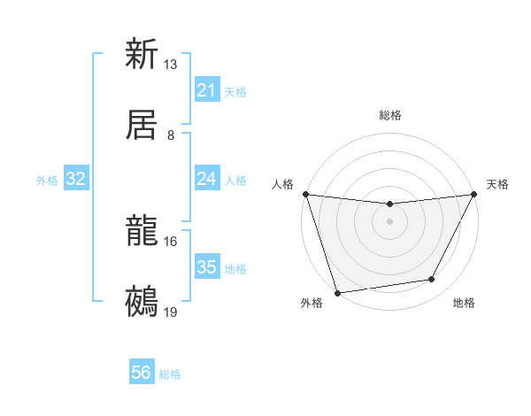 新居 龍鵺さんの外格は32画の5点!