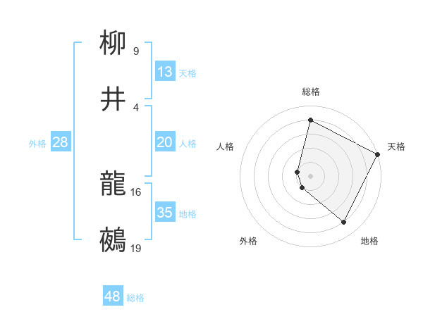 柳井 龍鵺さんの天格は13画の5点!