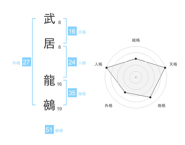 武居 龍鵺さんの総格は51画の3点!