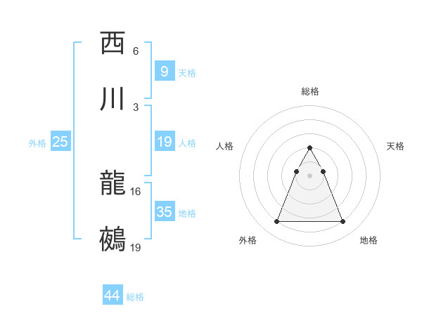 西川 龍鵺さんを姓名の画数から五運を鑑定