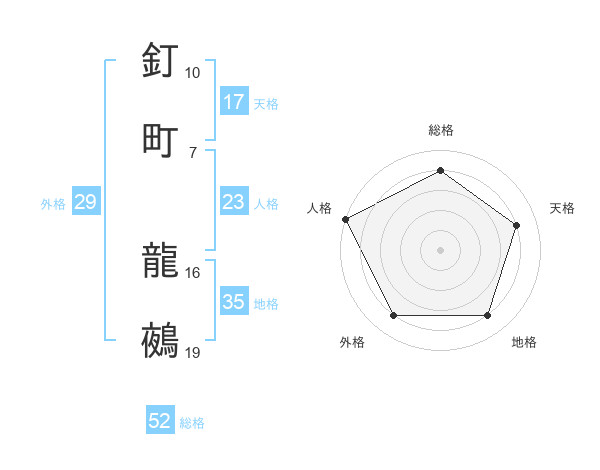 釘町 龍鵺さんを姓名の画数から五運を鑑定