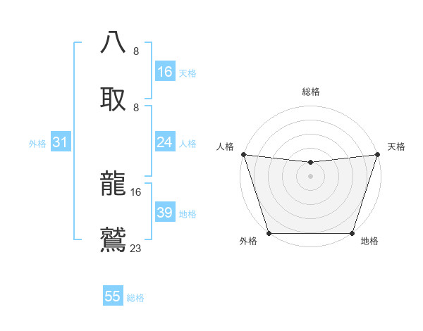 八取 龍鷲さんを姓名の画数から五運を鑑定