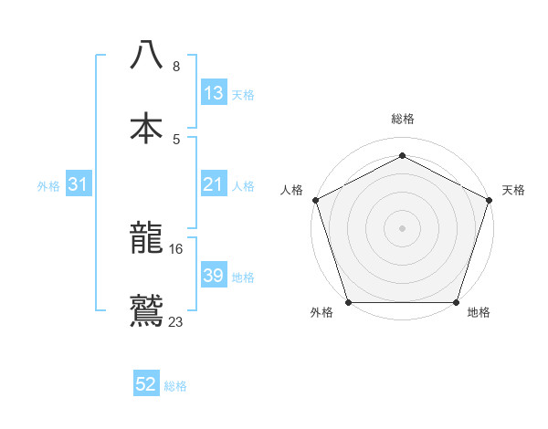 八本 龍鷲さんの総格は52画の4点!