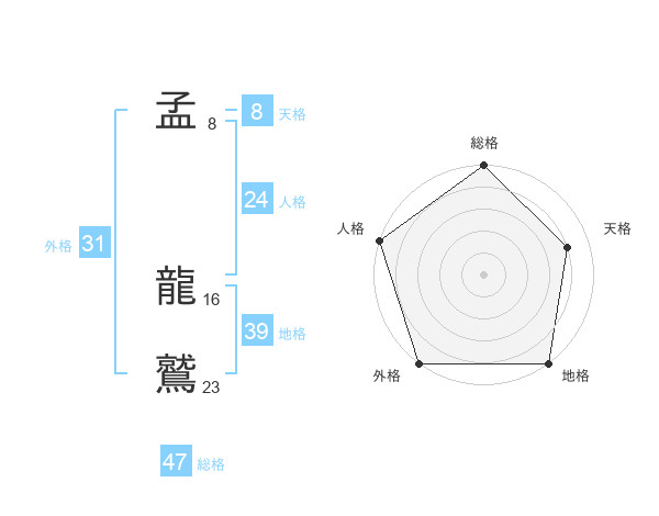 孟 龍鷲さんの総格は47画の5点!