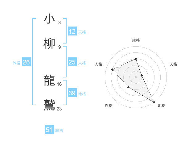 小柳 龍鷲さんの総格は51画の3点!