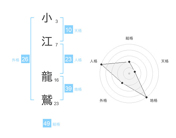 小江 龍鷲さんの総格は49画の2点!