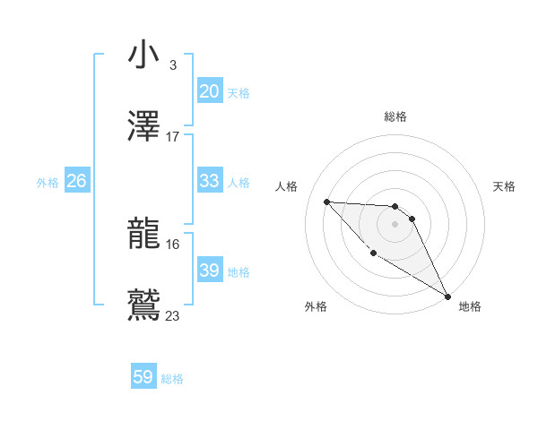 小澤 龍鷲さんの天格は20画の1点!