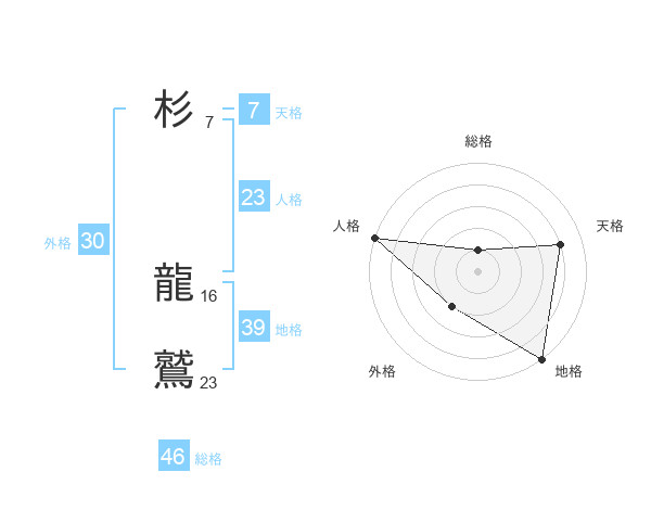 杉 龍鷲さんの総格は46画の1点!