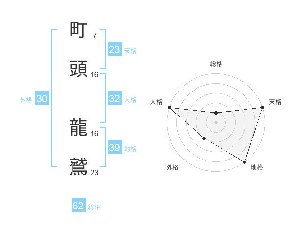 町頭 龍鷲さんの天格は23画の5点!