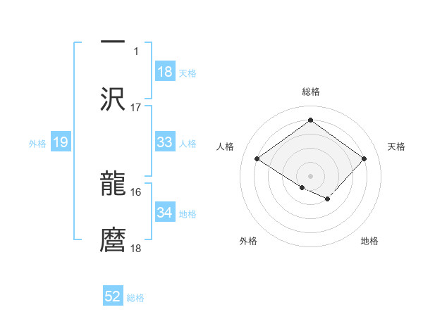 一沢 龍麿さんの総格は52画の4点!
