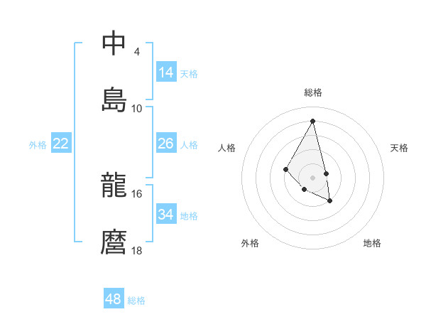 中島 龍麿さんを姓名の画数から五運を鑑定