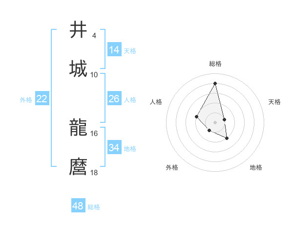 井城 龍麿さんの総格は48画の4点!