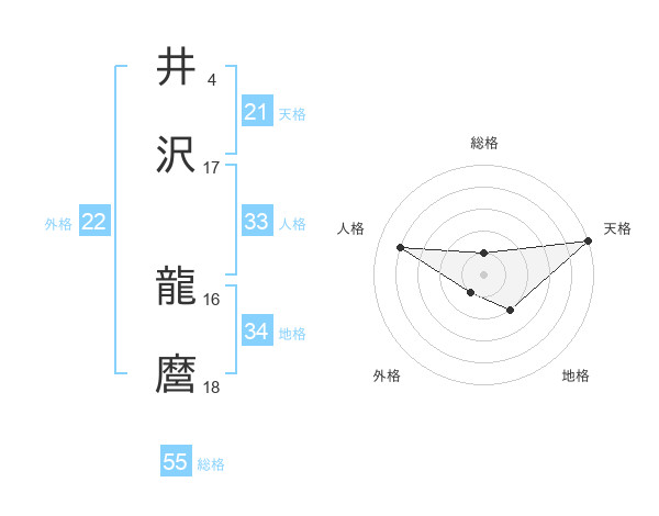 井沢 龍麿さんの総格は55画の1点!