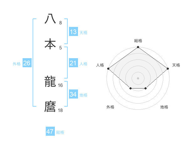 八本 龍麿さんを姓名の画数から五運を鑑定