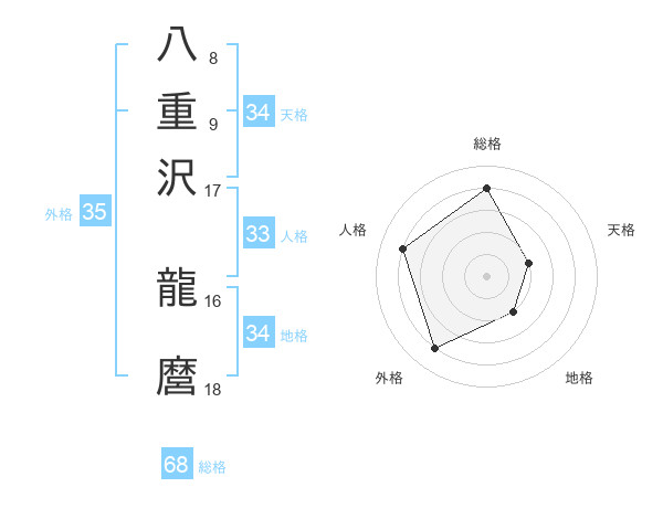 八重沢 龍麿さんを姓名の画数から五運を鑑定