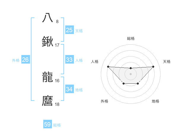 八鍬 龍麿さんの総格は59画の1点!