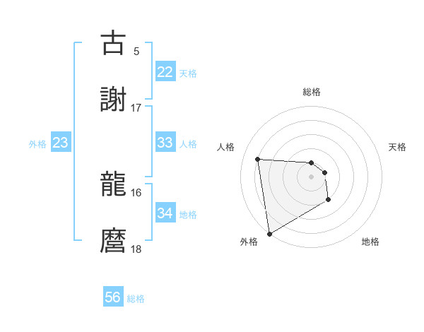 古謝 龍麿さんを姓名の画数から五運を鑑定