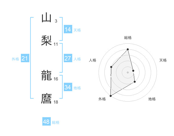山梨 龍麿さんを姓名の画数から五運を鑑定