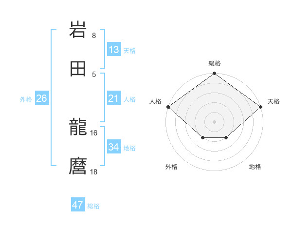 岩田 龍麿さんを姓名の画数から五運を鑑定