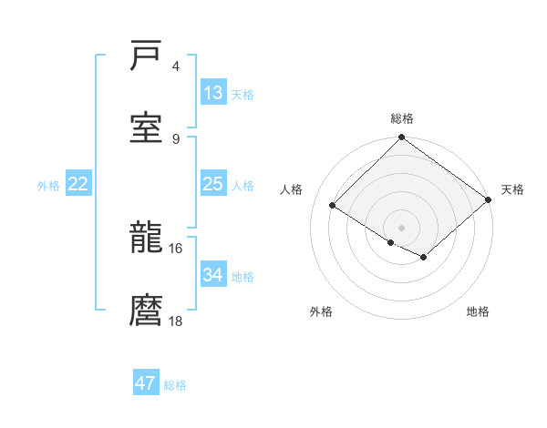 戸室 龍麿さんの総格は47画の5点!