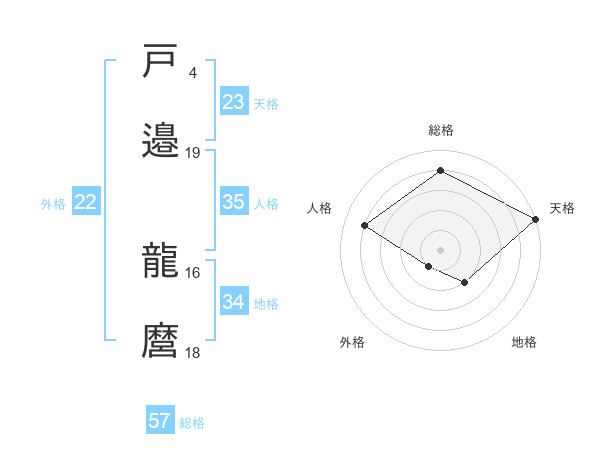 戸邉 龍麿さんを姓名の画数から五運を鑑定