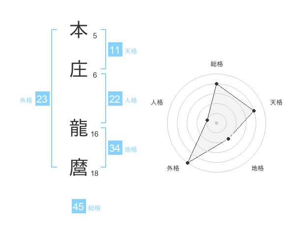 本庄 龍麿さんの外格は23画の5点!