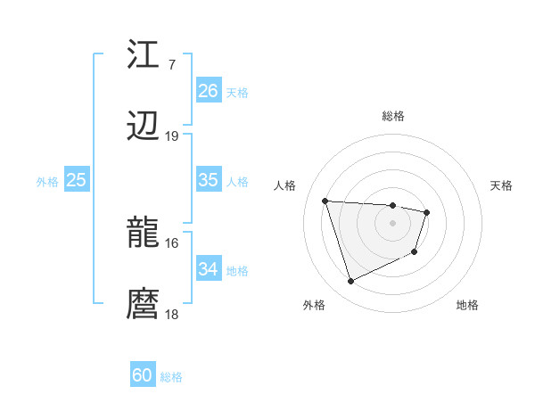 江辺 龍麿さんの総格は60画の1点!