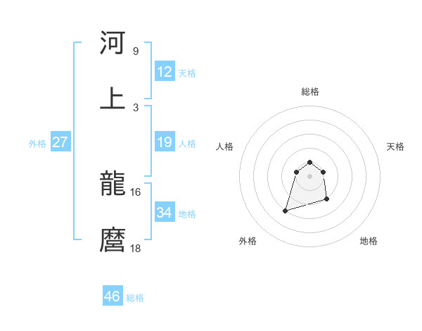 河上 龍麿さんの総格は46画の1点!