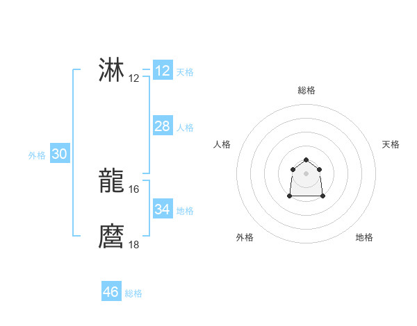 淋 龍麿さんを姓名の画数から五運を鑑定