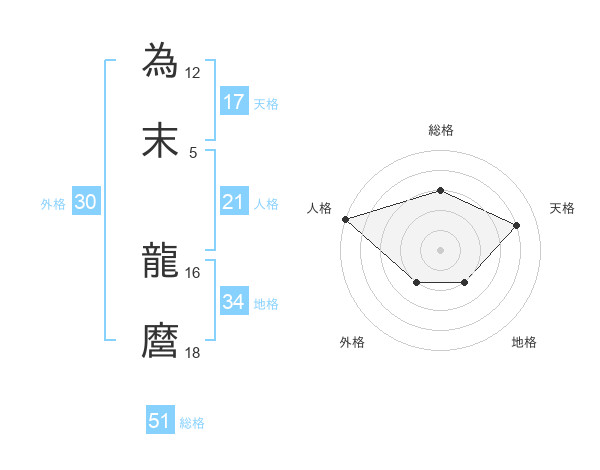 為末 龍麿さんの総格は51画の3点!