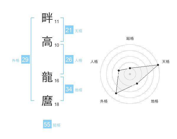畔高 龍麿さんを姓名の画数から五運を鑑定